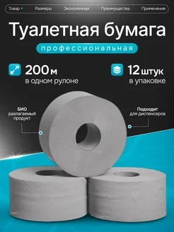 Туалетная бумага для диспенсера 200м серая, 1 слой