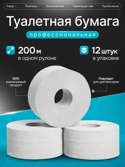 Туалетная бумага для диспенсера 200м белая, 1 слой