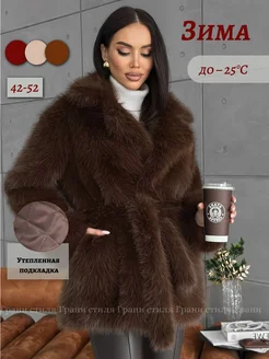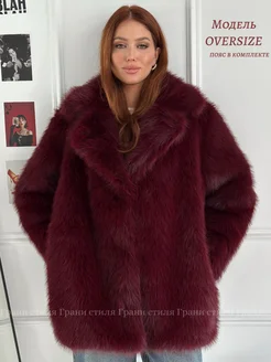 Шуба искусственная зимняя удлиненная оверсайз с поясом