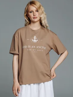 Футболка оверсайз с принтом "Бог - якорь для моей души"