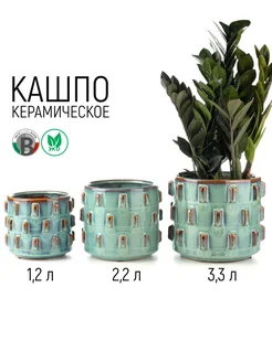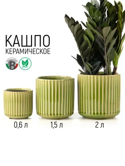 Кашпо 1,5 л. горшок для цветов керамика зеленое