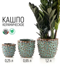 Кашпо 0,65 л. горшок для цветов керамика сине-зеленое