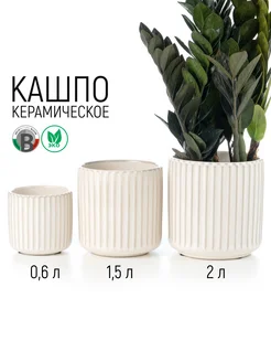 Кашпо 1,5 л. горшок для цветов керамика белое