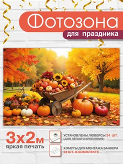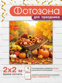 Баннер праздничный для фотозоны "Осень. Телега с тыквами"