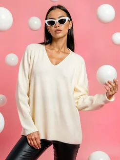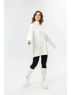 Дизайнерский свитер Cozy удлиненный с высоким горлом белый