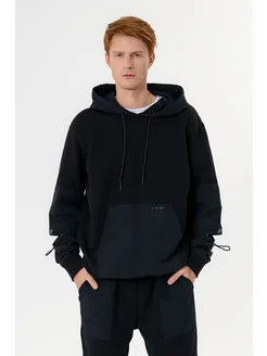 Жилетка со съемным капюшоном черная утепленная демисезонная
