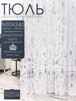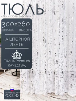 Тюль под лен в спальню и гостиную с рисунком 300х240 см