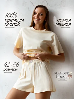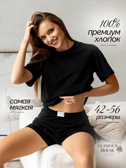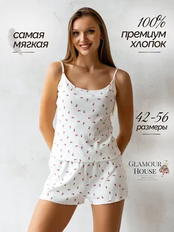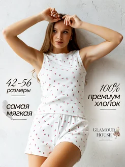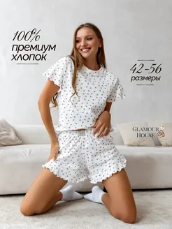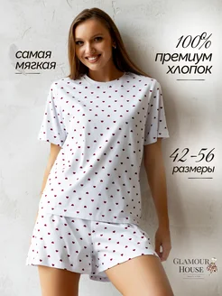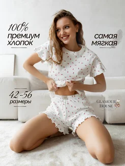 Пижама со штанами и футболкой хлопковая в рубчик сердечки