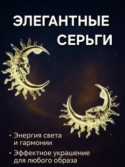 Серьги под золото бижутерия солнце луна