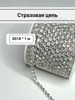 Тесьма со стразами SS18, белые в серебре, 1м