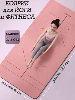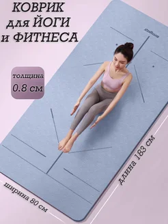 Коврик для йоги и фитнеса нескользящий, широкий, с чехлом