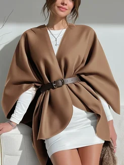 Пончо кейп с поясом накидка оверсайз