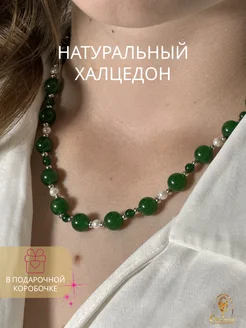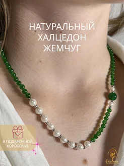 Колье из натуральных камней халцедона и жемчуга чокер
