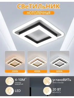 Светильник потолочный светодиодный, квадрат