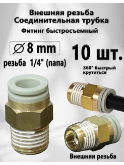 Фитинг пневматический 8 мм Резьба R 1 4" Набор 10 шт