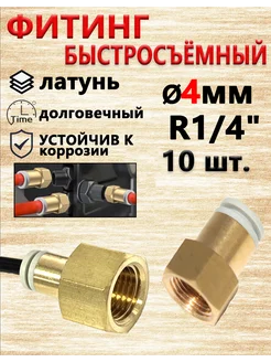 Фитинг пневматический 4 мм. Резьба R 1 4". Набор 10 шт