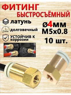 Фитинг пневматический 4 мм. Резьба M5". Набор 10 шт