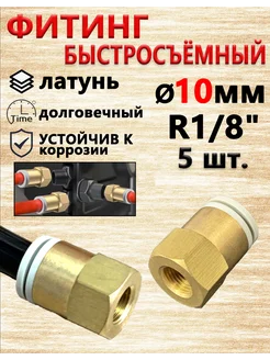 Фитинг пневматический 10 мм. Резьба R 1 8". Набор 5 шт