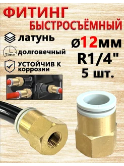 Фитинг пневматический 12 мм. Резьба R 1 8". Набор 5 шт