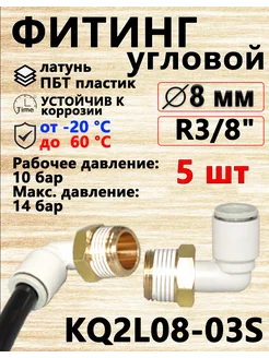 пневмо фитинг KQ2L08-03S, 8мм - R3 8", 5шт