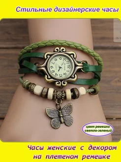 Стильные часы с декором плетеный светло-зеленый ремешок