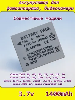 Аккумулятор NB-4L 1400mAh для фотоаппаратов и видеокамер