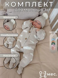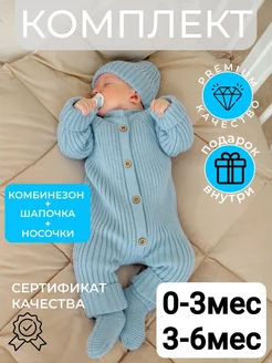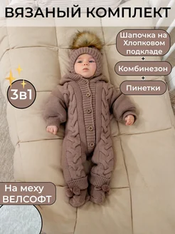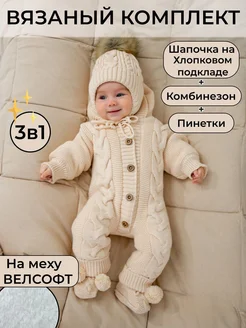 Комбинезон вязаный для малыша утепленный на меху комплект