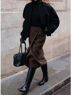 юбка миди с запахом и разрезом спереди