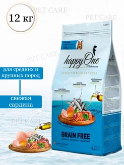 Хэппи ван сухой корм для собак с сардиной, 12 кг