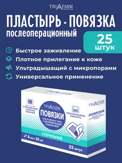 Пластырь повязка послеоперационный 9х15 см, 25 шт, 10х15