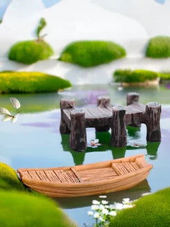 Лодка и пирс набор фигурок для флорариума и кашпо