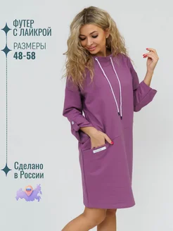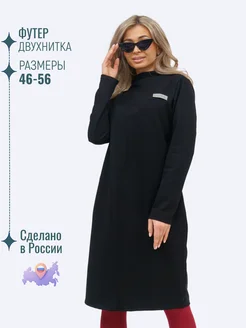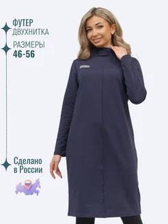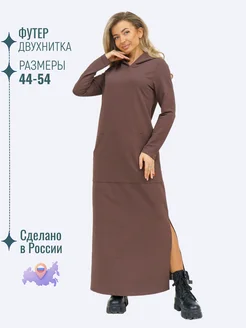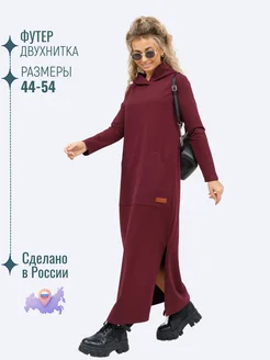 Платье женское длинное с рукавами теплое с капюшоном футер