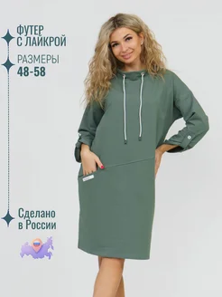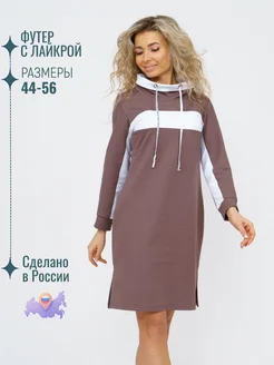 Платье женское больших размеров с капюшоном футер