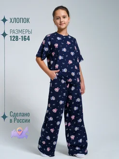 Пижама для девочки футболка со штанами оверсайз хлопок