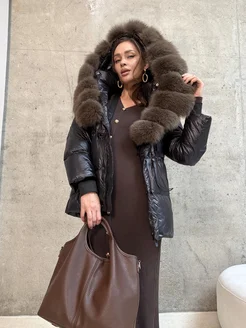 Пуховик зимний длинный оверсайз с капюшоном