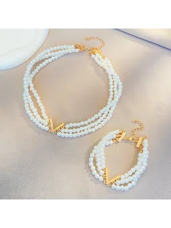 Комплект украшений колье, чокер, браслет на руку бижутерия