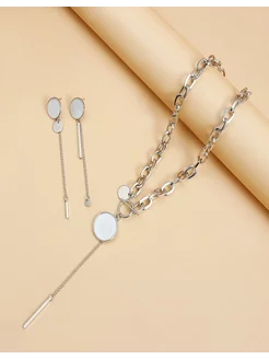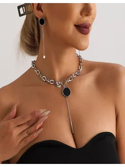 Бижутерия комплект колье цепь и серьги чёрная подвеска