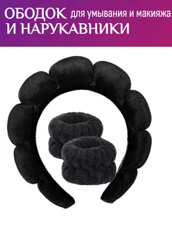 Ободок для умывания с нарукавниками набор черный 6в1
