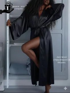 Халат кимоно шелковый длинный атласный