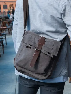 Сумка через плечо почтальонка из канваса серый