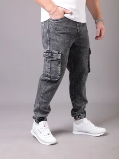 Джинсы зауженные брюки джоггеры штаны на резинке с карманом