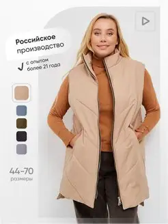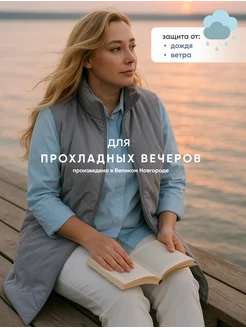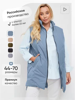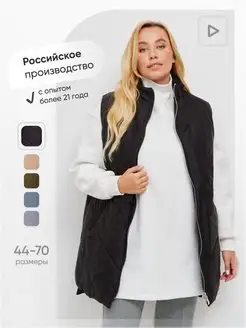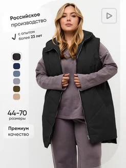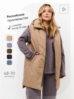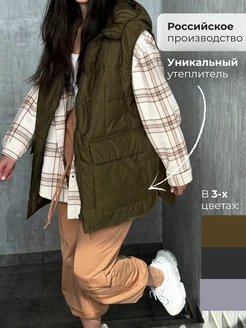 Жилет стеганый удлиненный утепленный с капюшоном осень 2025