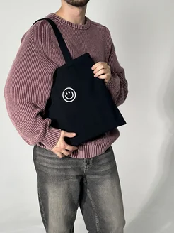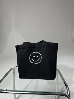 Сумка шоппер черная с принтом смайл