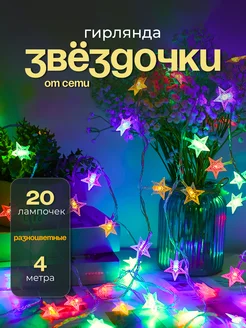 Гирлянда звезды новогодняя на елку разноцветная