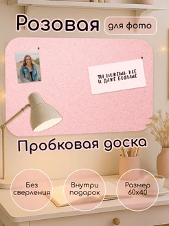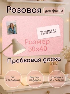 Розовая пробковая доска на стену 40х60 с гирляндой