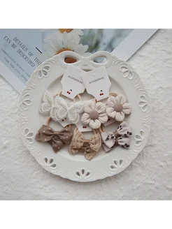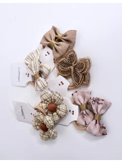 Набор резинок для волос в школу бежевый зеленый 10 штук