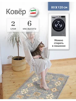 Ковер комнатный на пол безворсовый 80 х 120 см глина