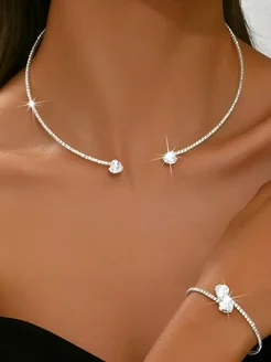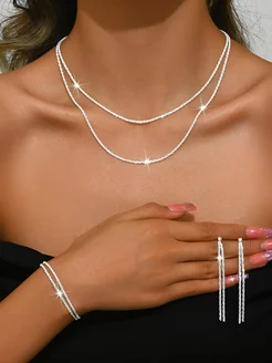 Комплект бижутерии вечерний свадебный цепочка серьги браслет