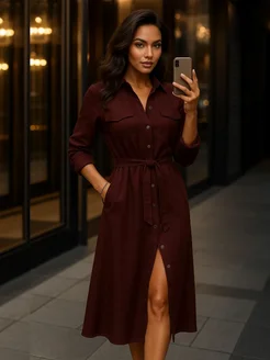 Платье рубашка миди офисное