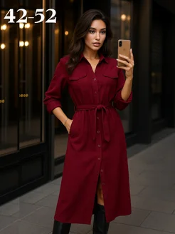 Платье рубашка осеннее миди офисное деловое